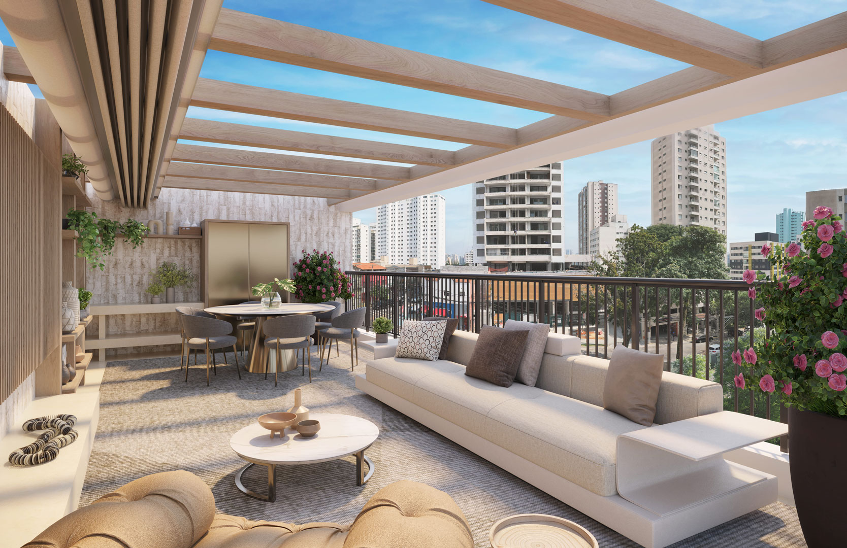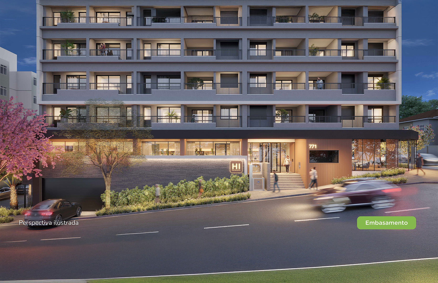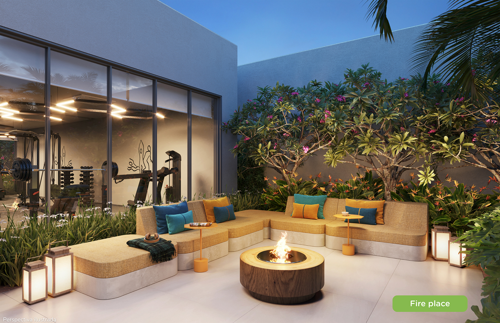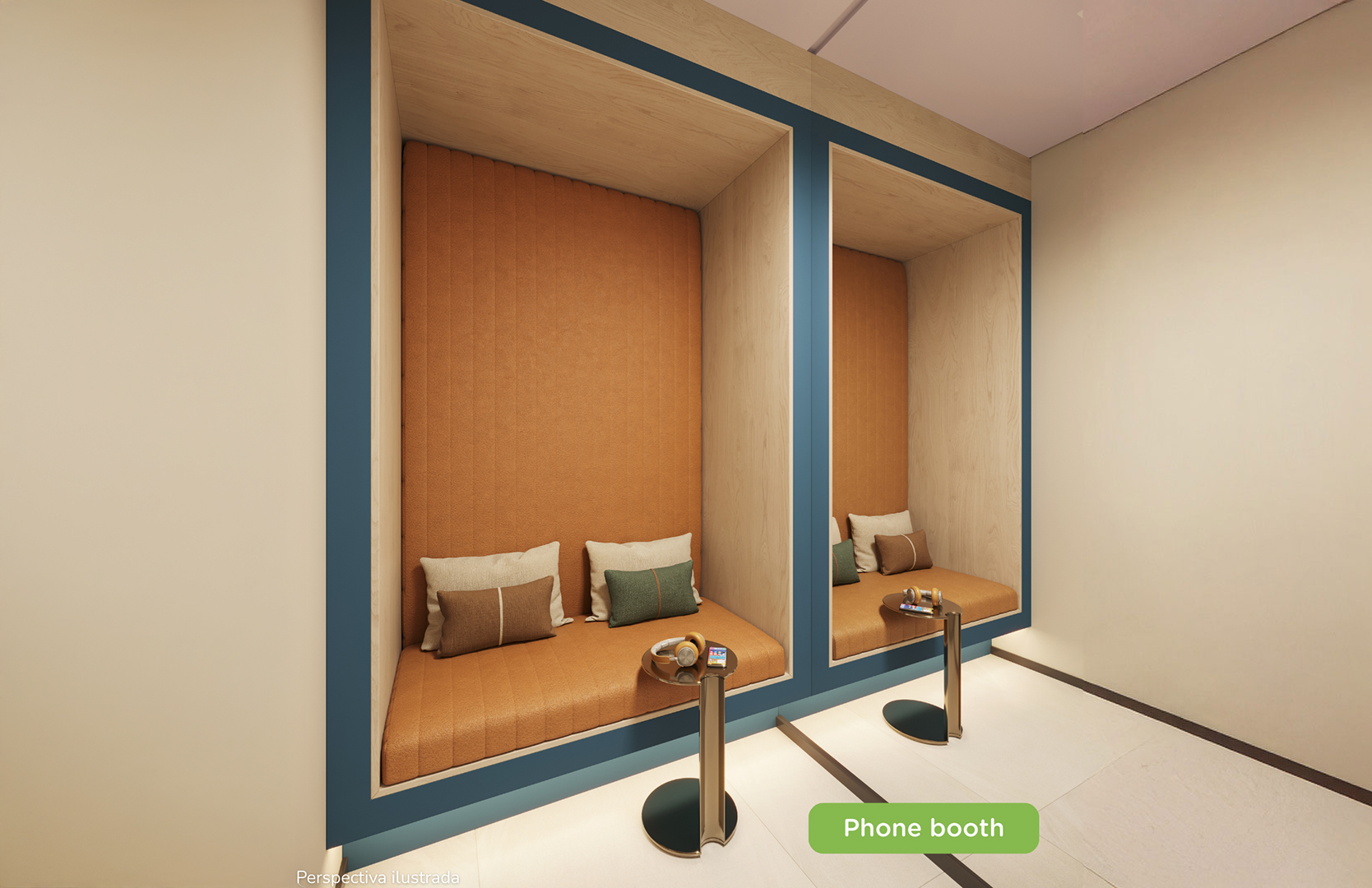 Térreo: Lobby Lounge, Mercado de uso interno, Coworking, Sala de reuniões, Phone Booth, Brinquedoteca, Fitness, Salão de Festas, Delivery, Guarita Blindada